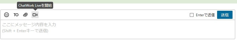 ChatWork Liveの使い方も非常に簡単で、メッセージボックスの左上にビデオのアイコンがあります。マ