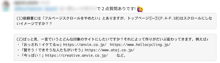 質問内容が見やすく整理されている