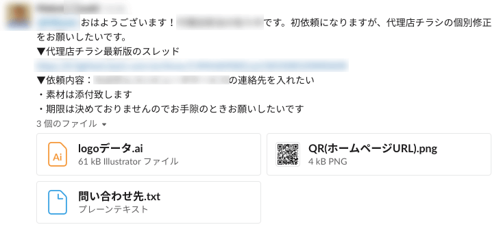 依頼概要、期日、必要なデータもまとめて整理して送信されている
