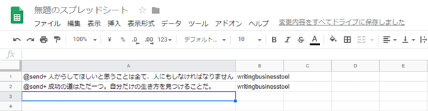 Googleスプレッドシートに貯め込んでいきたいと思う投稿のときだけボットのIDをメンションするだけなので、運用も簡単です。