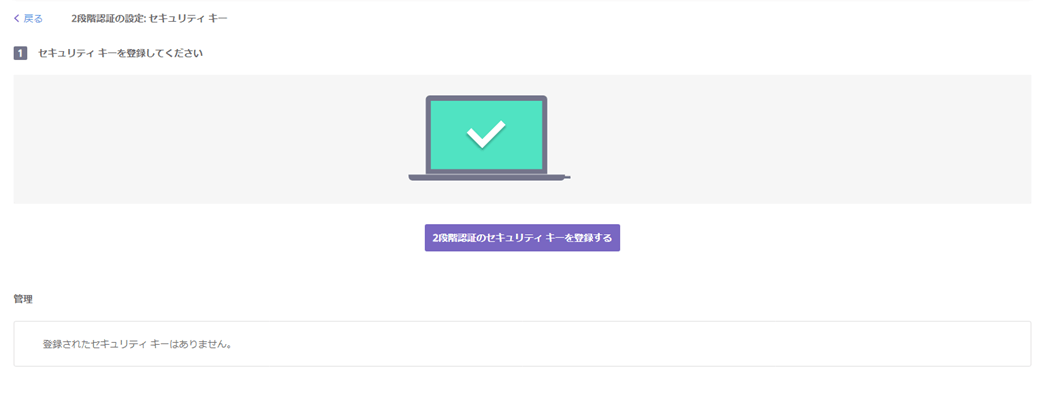 セキュリティキーを登録する場合は、「2段階認証のセキュリティキーを登録する」を選択して、事前に登録しておいたUSBをキーとして登録します。