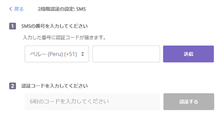 SMSを利用する場合は、画面にSMSを受信させる携帯電話番号を登録し、送信を選択します。