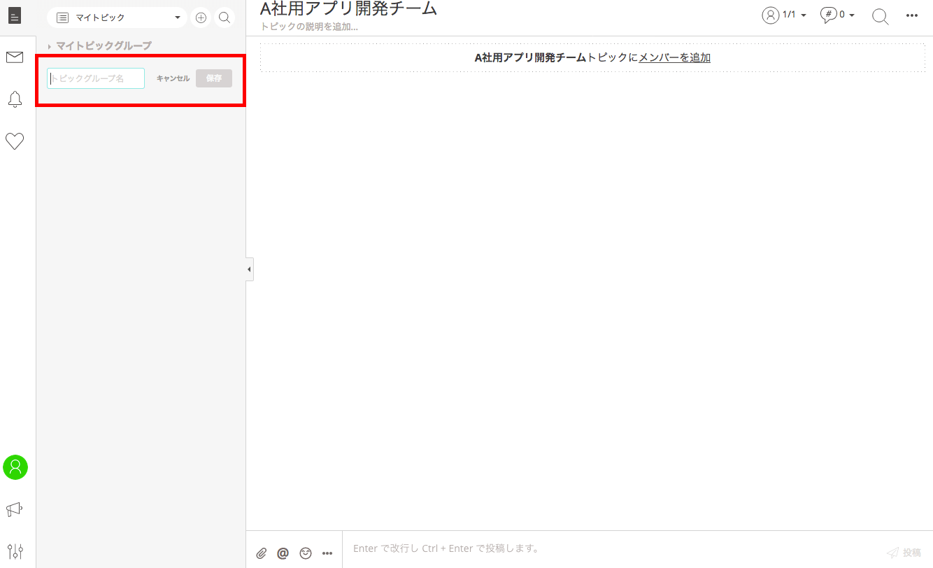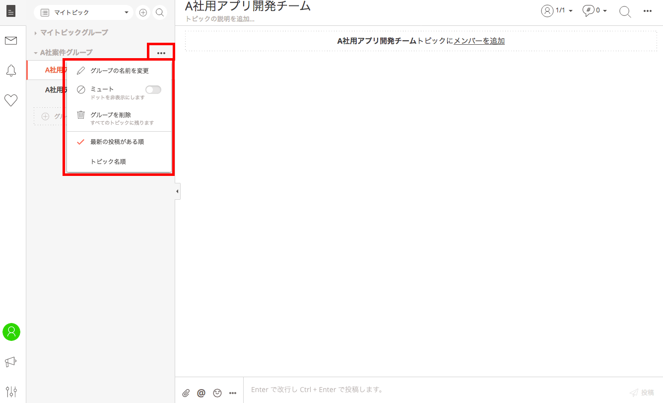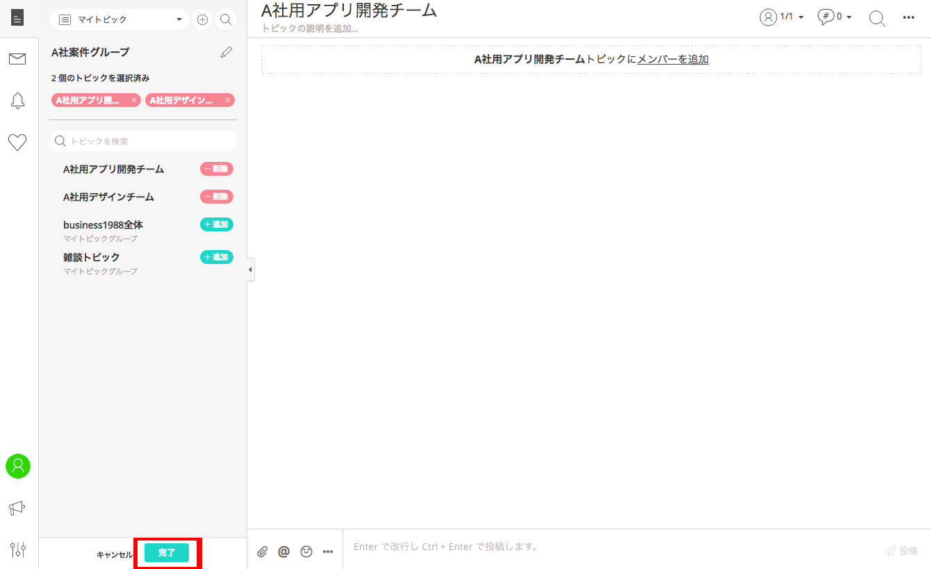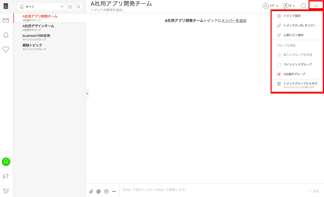 例えば、「A社用デザインチーム」と「A社用アプリ開発チーム」のトピックは、同じA社関連であっても、業務内容が異なります。