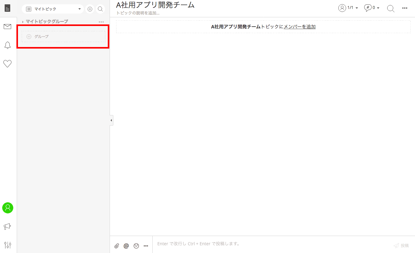 新しくトピックグループを作成する場合、まず「+グループ」ボタンを選択。