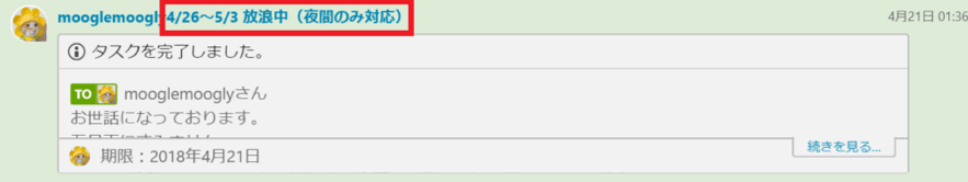 チャットワークを使用している際に、このような感じでユーザー名の後ろに今後の予定を書いている人を見かけたことはありませんか?