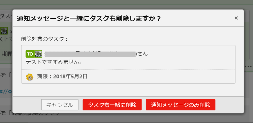 タスクを送信したときのメッセージを削除するときには、タスクも削除するかどうかの確認ダイアログが表示されます。
