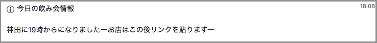 予定のある1週間ほど前からこのように周知しておけば、周囲にいちいちメッセージを流さなくても予定を知らせることができます!