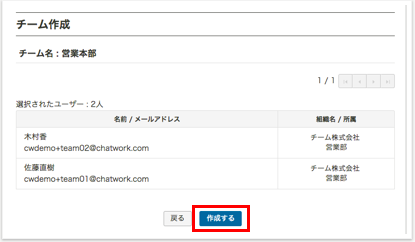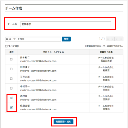 チーム名を入力し,チームに入れたいメンバーを選択。