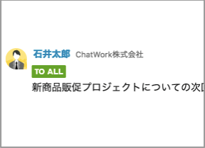Chatwork(チャットワーク)についに登場した機能、「To ALL」。今まで、グループに一斉送信をすると全員の名前がメッセージの前に表示されていました。