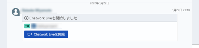 すると、グループ内のメンバーのチャットに、Chatwork Liveが開始された旨の通知が送られます。