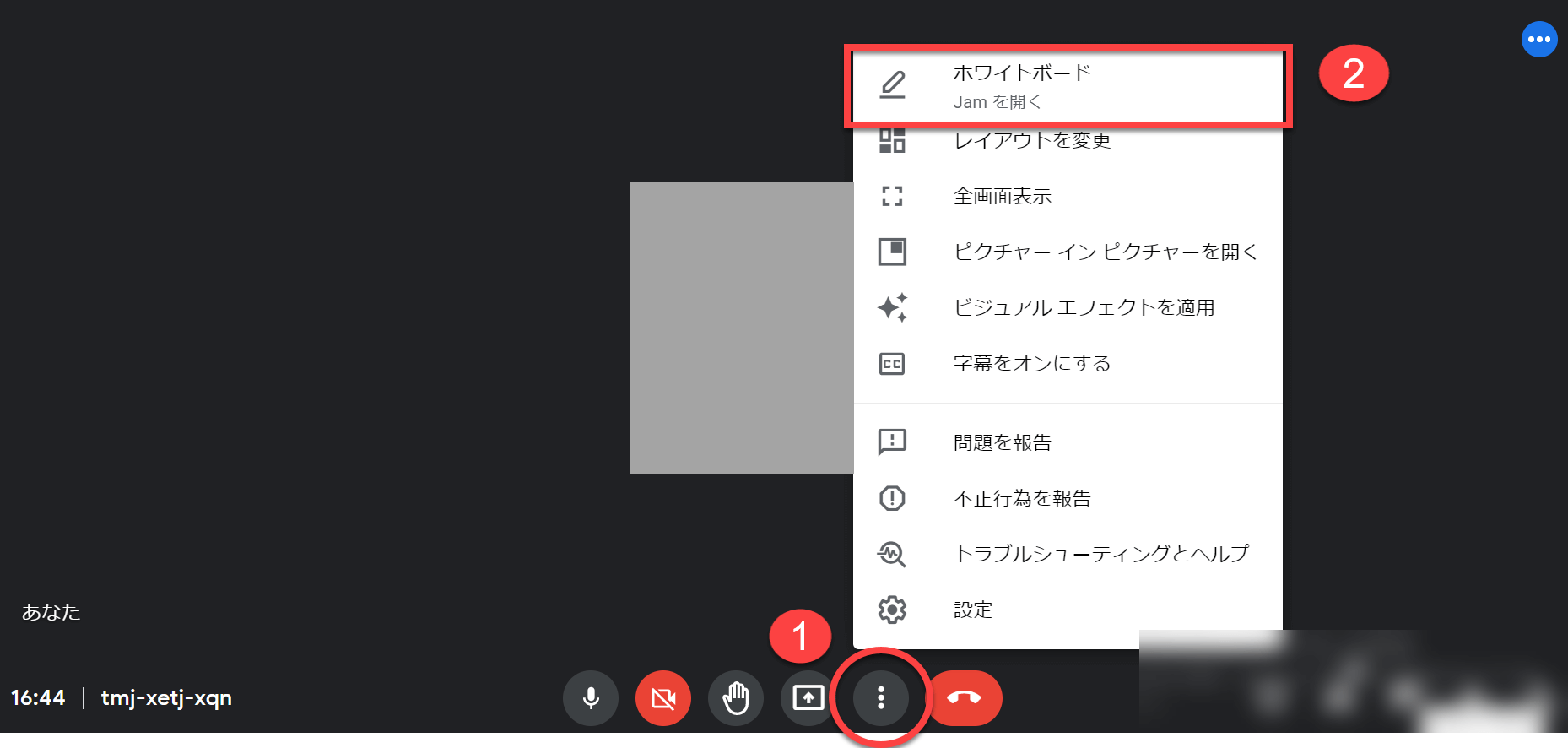 「3点リーダー」→「ホワイトボード」→「新しいホワイトボードを開始」