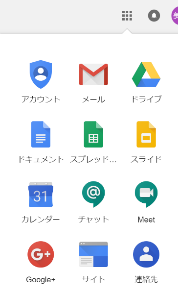 パソコンのブラウザからアクセスする際は、Google ChatのURLを直接入力するか、Googleの右肩にあるサービスアイコングループから「チャット」を選択してください。