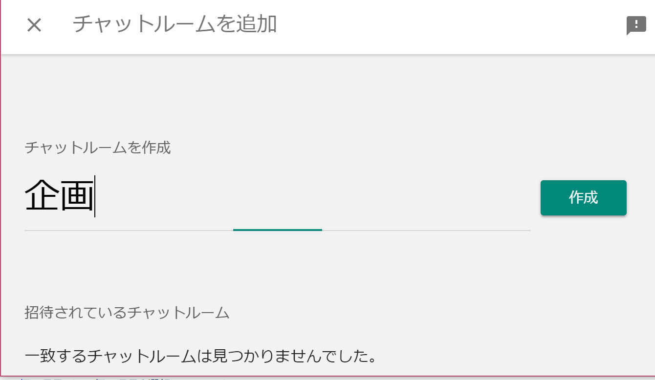 「チャットルームを追加」画面が表示されたら、チャットルームの名前を入れて新たにチャットルームを開設しましょう。真ん中に名前の入力欄がありますが、同じ名前のチャットルームがある場合は、事前にエラーが出るので心配無用です。