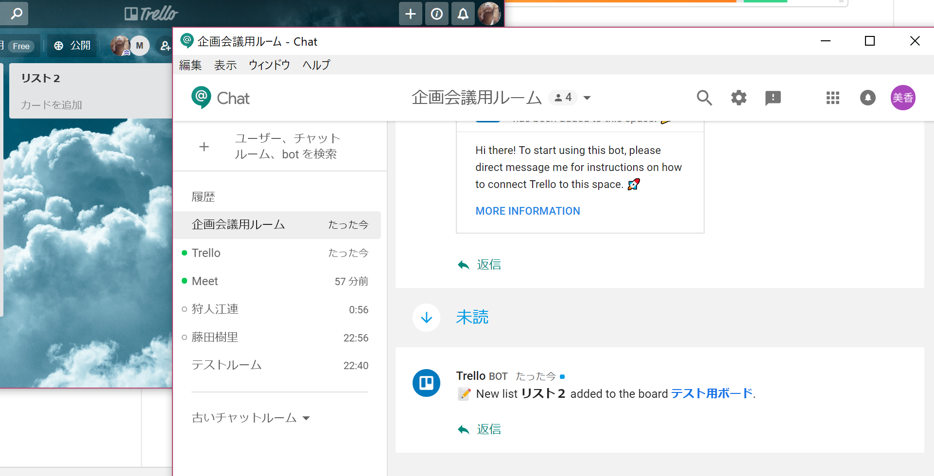 Trelloは、シンプルで使いやすいタスク管理アプリです。Trello botは、Trello上での操作、例えばカードやリストの追加、移動などの操作をGoogle Chatの指定したチャットルームやダイレクトメッセージを通じで知らせてくれるbotです。