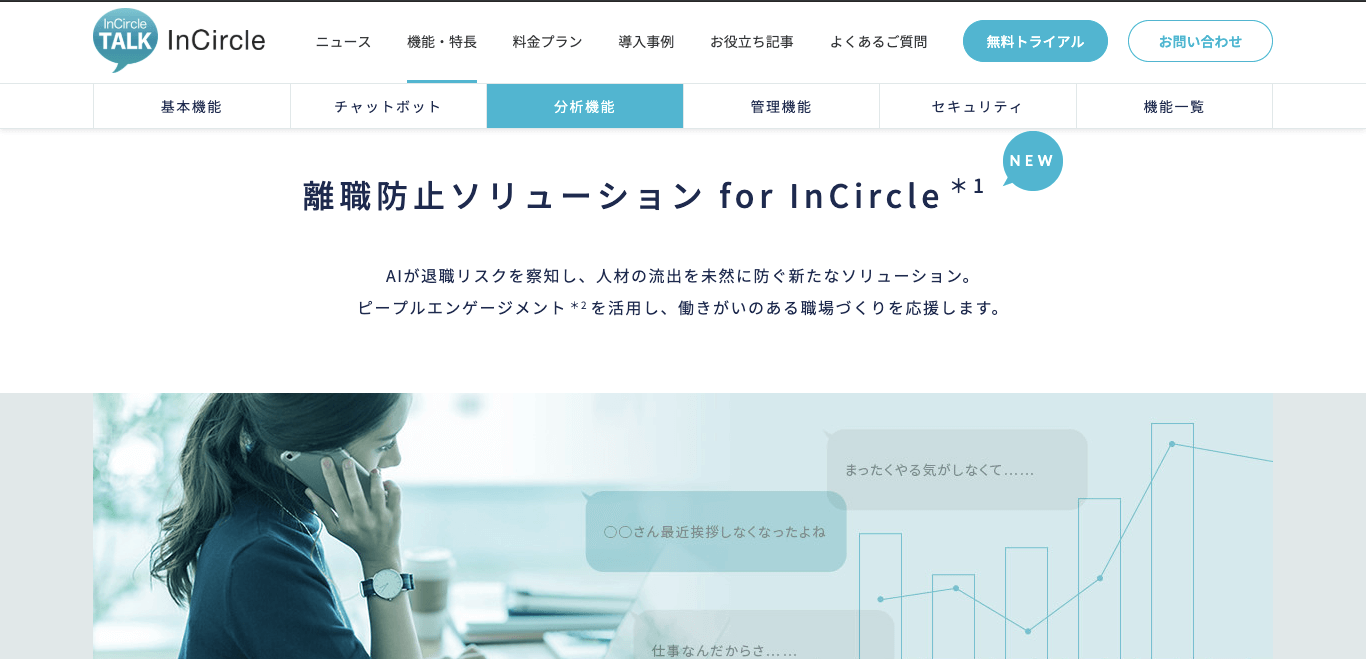 ビジネスチャット「インサークル」には「離職防止ソリューション for InCircle」という機能があります。