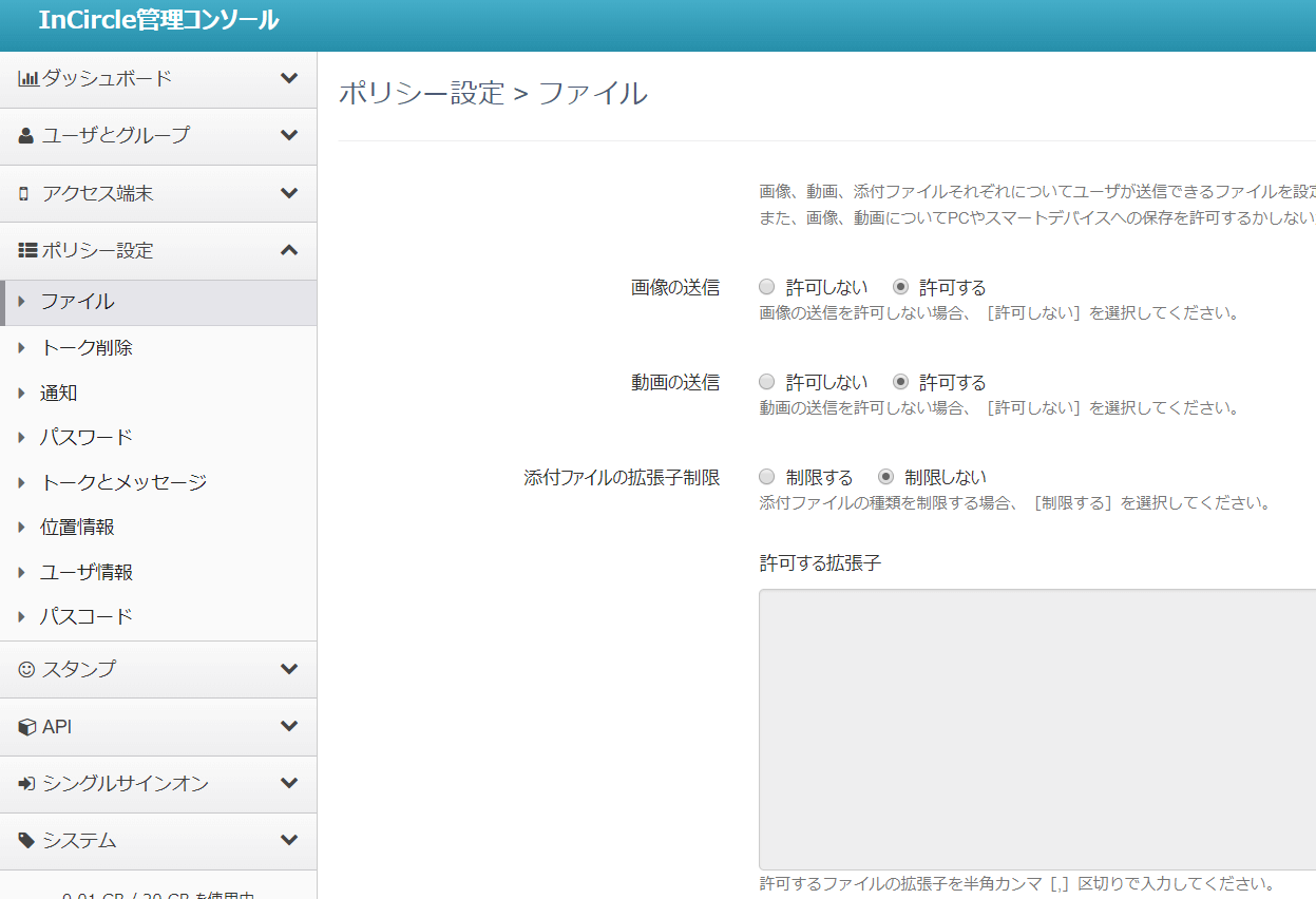 インサークルは、管理コンソールで各種ポリシーについてかなりきめ細かな設定ができる点が大きな特徴です。