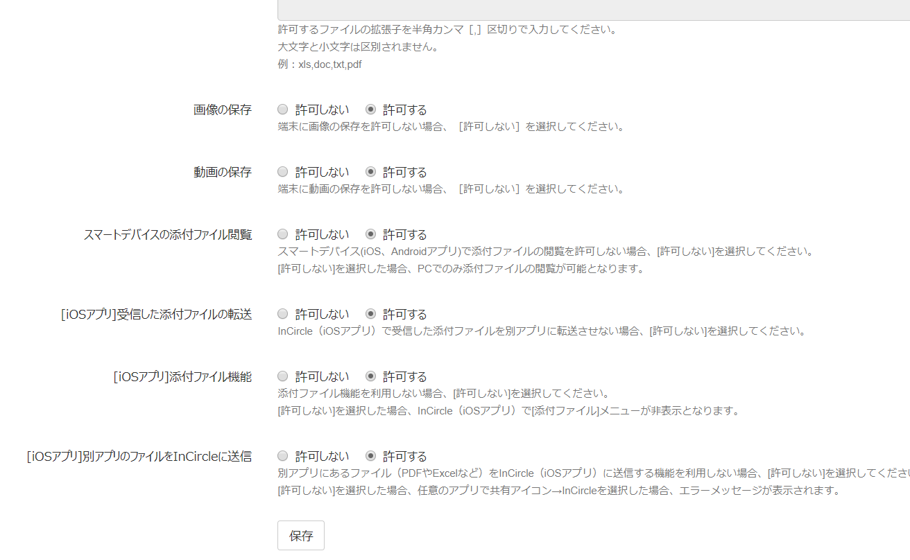 インサークルでは、ファイルの送信・受信に対しかなりきめ細かな設定が可能です。