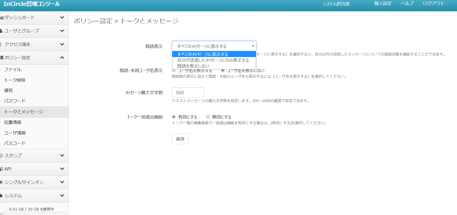 システム管理者はすべての権限を持ち、インサークルのポリシーを含めたすべての操作が可能です。
