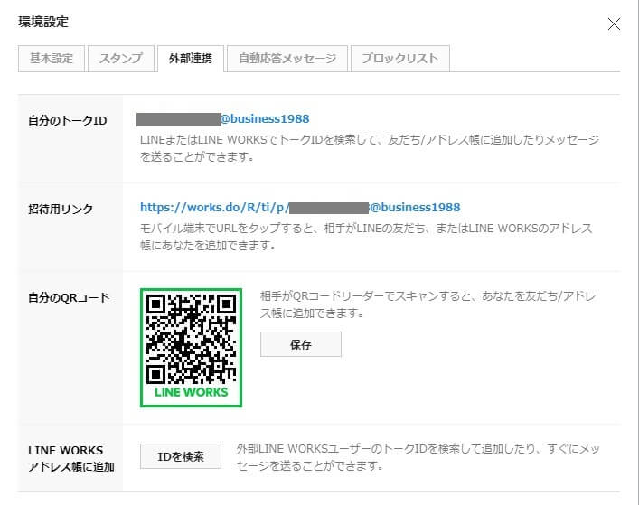 生成されたLINE WORKSのIDを伝えて、LINEのユーザーに友達に追加してもらうとトークが行えます。