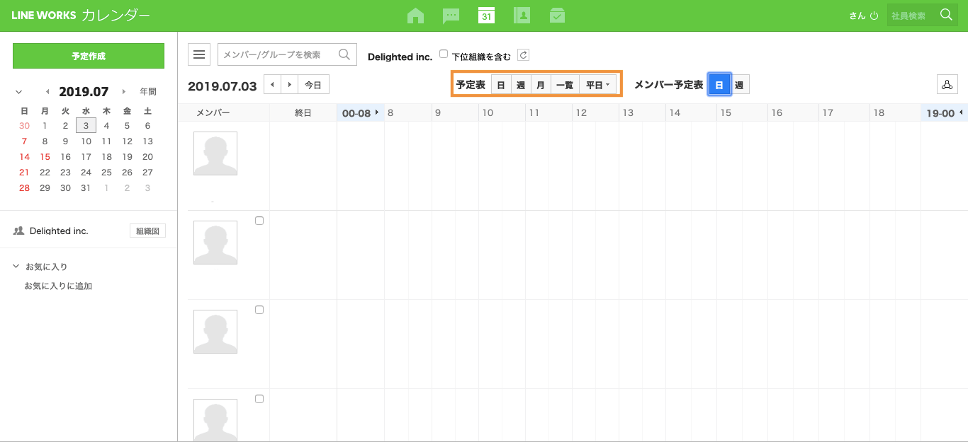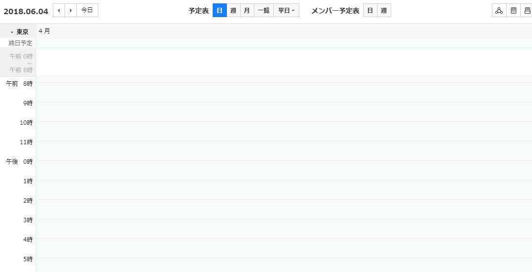 1. 「メンバー予定表」を選んでいる場合は、「予定表[日・週・月・一覧・平日]」のどこかをクリックしましょう。