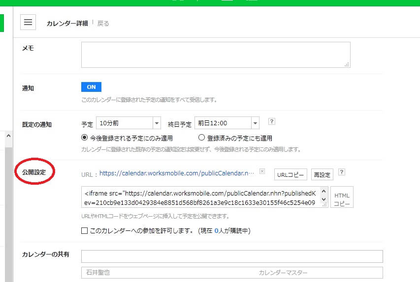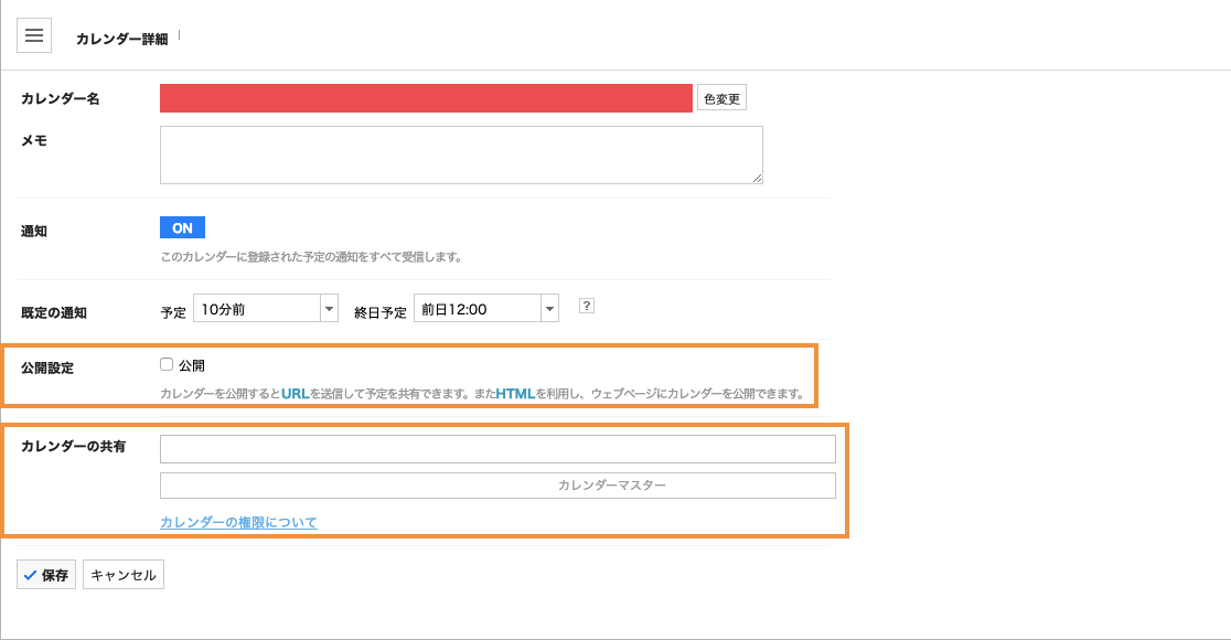 「公開」をチェックしないと非公開カレンダーになります。