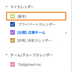 デフォルトで作成されているもので削除することができない。主に自分のスケジュールを書き込むためのカレンダー。