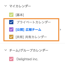 また、メンバーから招待された予定もこのマイカレンダーに記載される。