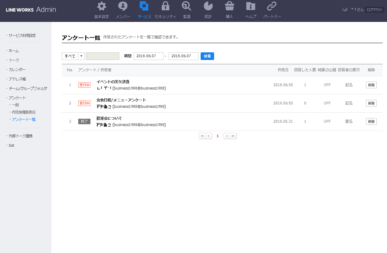 グループトークと並んで便利なのがアンケート機能です。社内での色々な調査だけでなく、社員の意見を求める時に使えます。