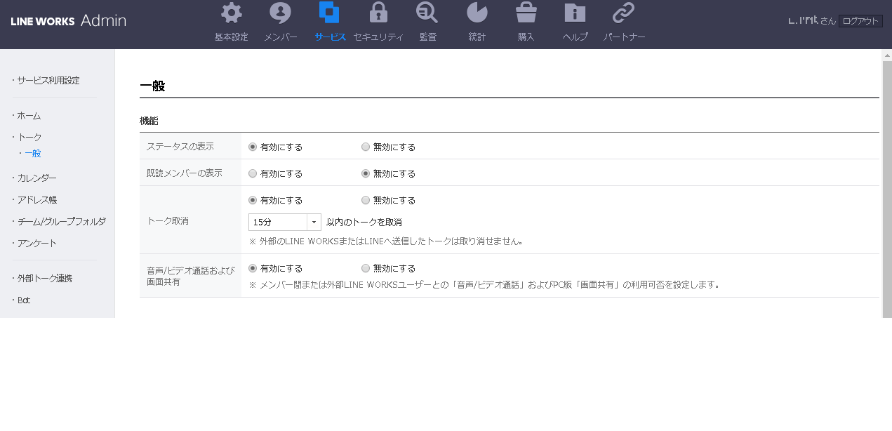 LINE WORKSではメンバーの空き時間を自動検索できるので、スタッフミーティングの調整がやりやすくなっています。またトークの環境設定も可能です。たとえば取り込み中などの表示ができ、他のスタッフへ知らせることができます。