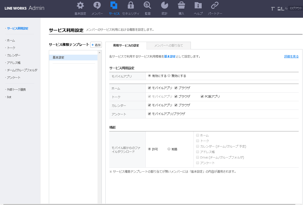 特定のメンバーに対しサービスや機能を制限する設定