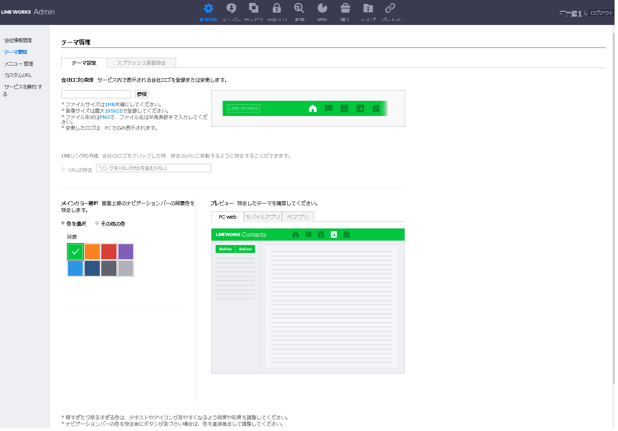 管理者は自社のLINE WORKSをより使いやすくするためのテーマ管理が実行可能です。