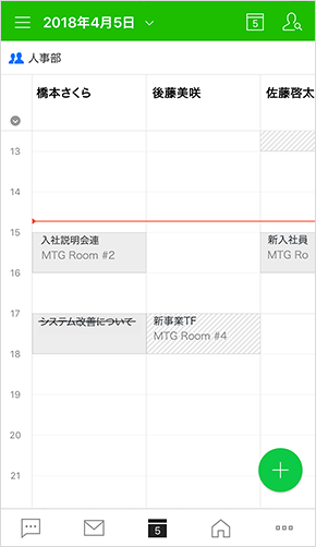 LINE WORKSのカレンダー機能は、メンバーの空き時間を自動で割り出して日程調整ができることに加え、会議室の予約も同時にできてしまう優れものです。