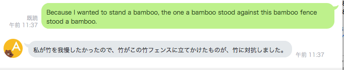 そういえば, LINEにも「LINE英語翻訳」という公式アカウントがいた!と思い,翻訳してもらいました。