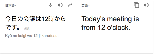 「今日の会議は12時からです。」を「Today’s meeting starts at 12 o’clock.」と翻訳してくれました!