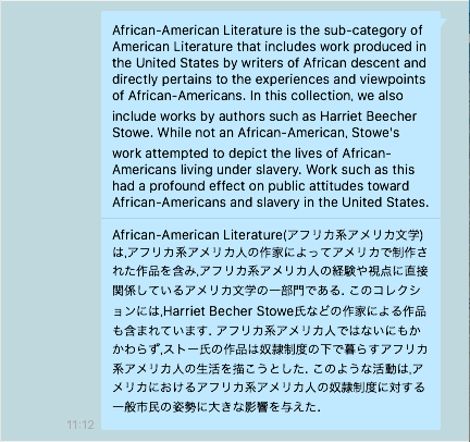 LINEWORKSで通訳された英文をもう一度LINEWORKSに送った結果がこちら↓