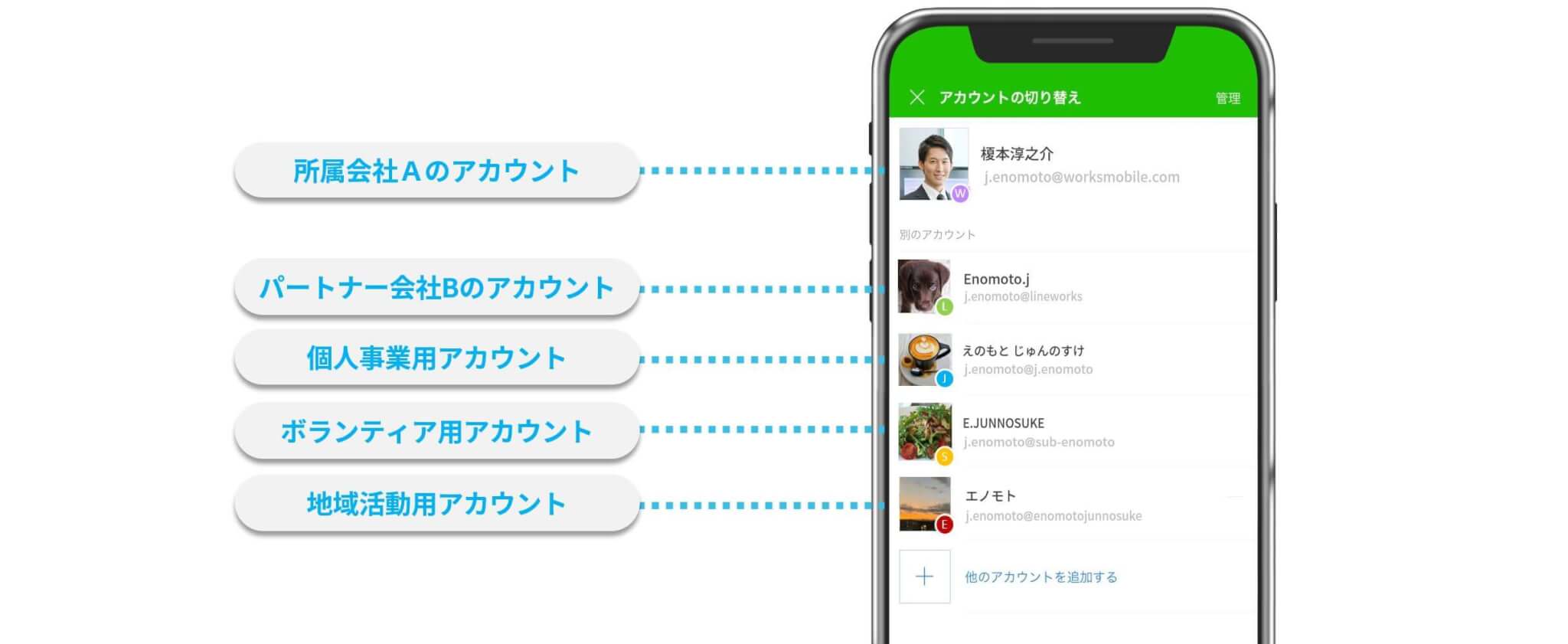 会社ごとにLINE WORKSアカウントを持っている場合や、