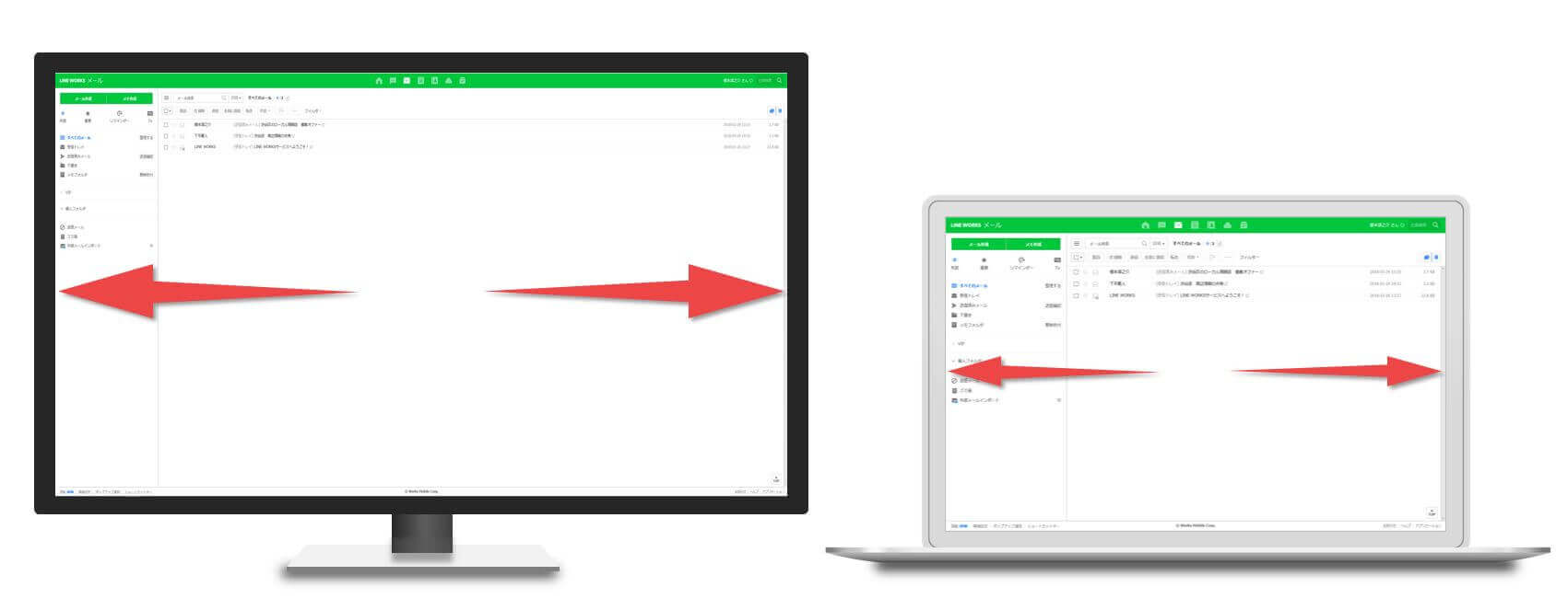 今回、ブラウザ版のLINE WORKSがレスポンシブルに対応し、画面の大小に関わらず、より見やすく利用できるようになっています。