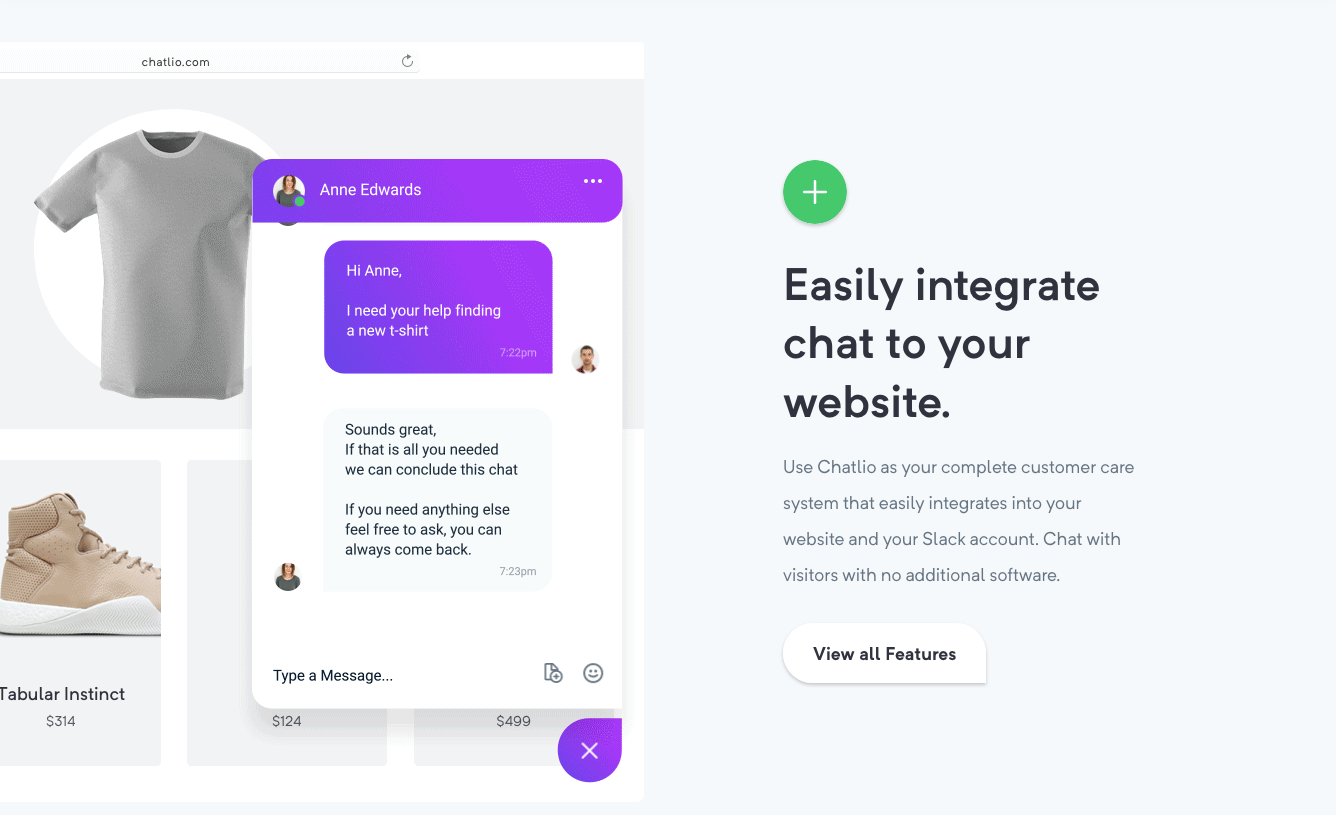 外部機能のひとつである「Chatlio」はSlackに連携させることで、お客様からのお問い合わせに全てSlack上で返信できるようになるサービスです。また「Chatlio」は、Webサイト上の好きな場所に設置できます。