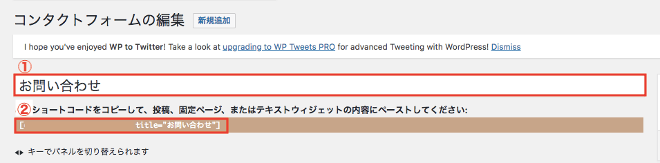 ①お問い合わせフォームの題名をつけましょう