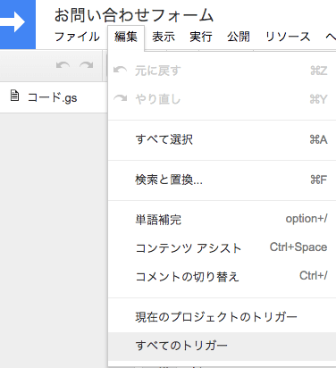 「編集」→「すべてのトリガー」を選択