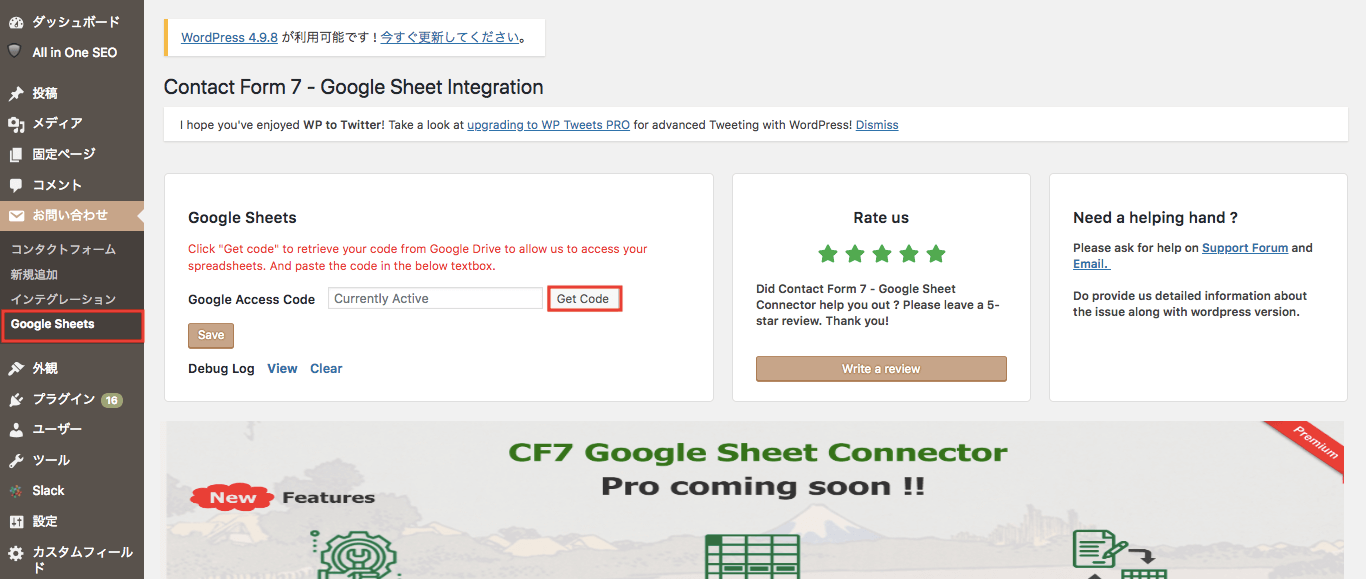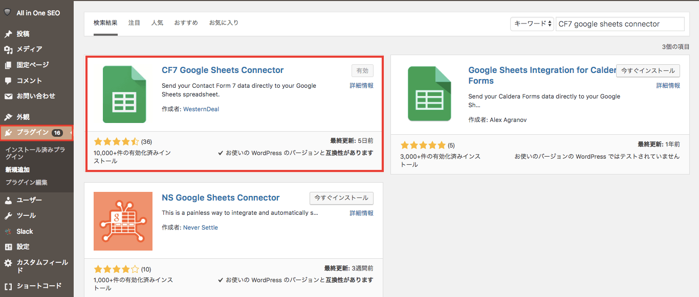1-3.『CF7 Google Sheets Connector』をプラグインする
