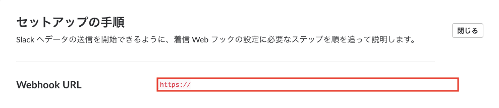 一番上に書いてあるWebhookのURLをコピーしておきましょう。