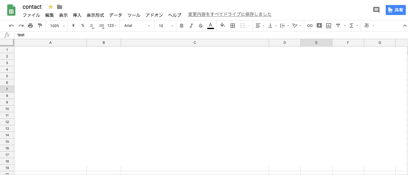 まずは、お問い合わせが来た時に表示するためのスプレッドシートを作成していきましょう。