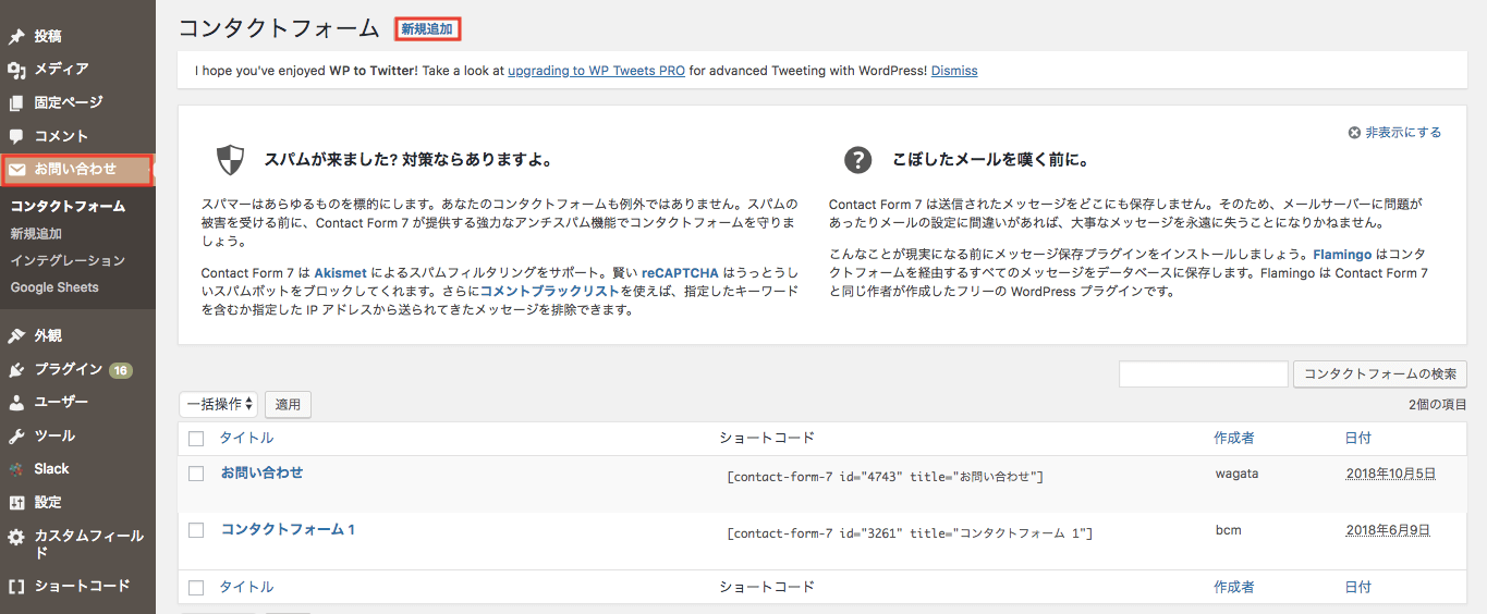 このプラグは作成者が日本人であることに加え、とっても簡単に、コードをいじる必要もなくお問い合わせフォームが作れてしまうのでオススメです!