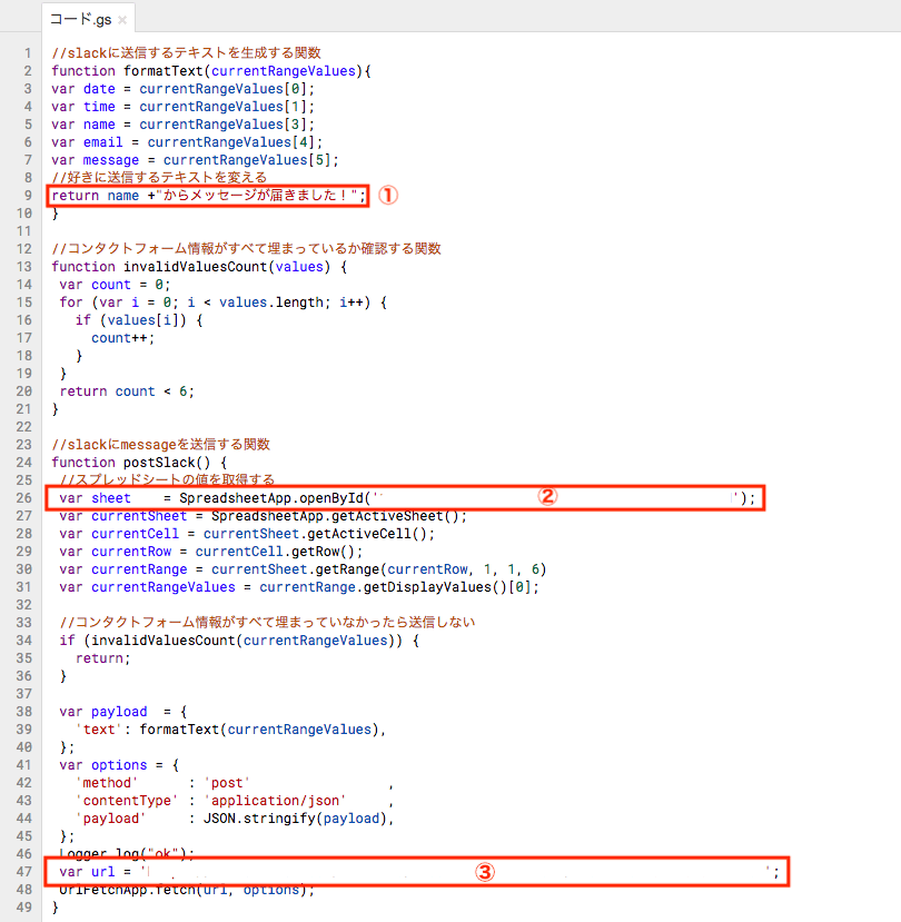 *なお、GoogleSpreadSheetの内容をSlackで自動投稿するを参考にさせてもらいました。