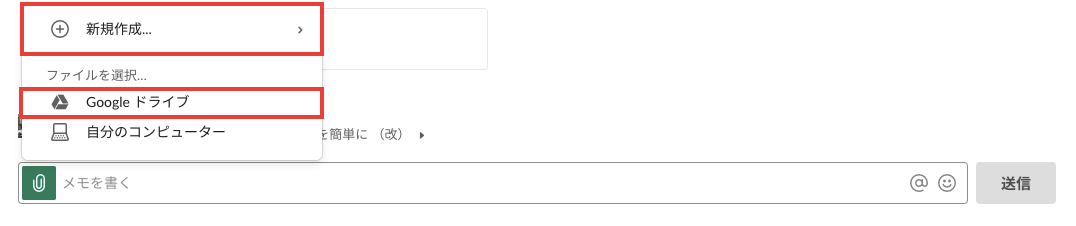 「新規作成」を選択すれば、GoogleドキュメントやスプレッドシートをSlackから新しく作ることができるのです。