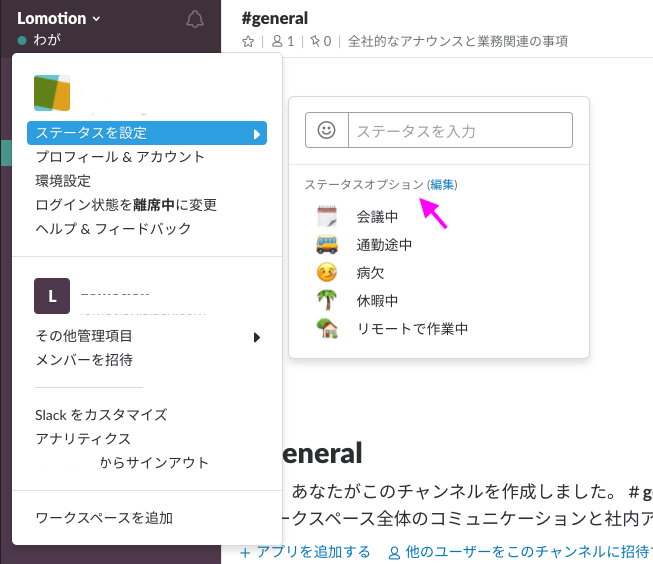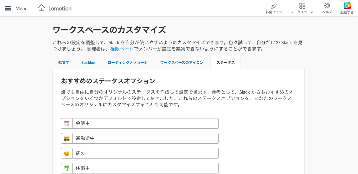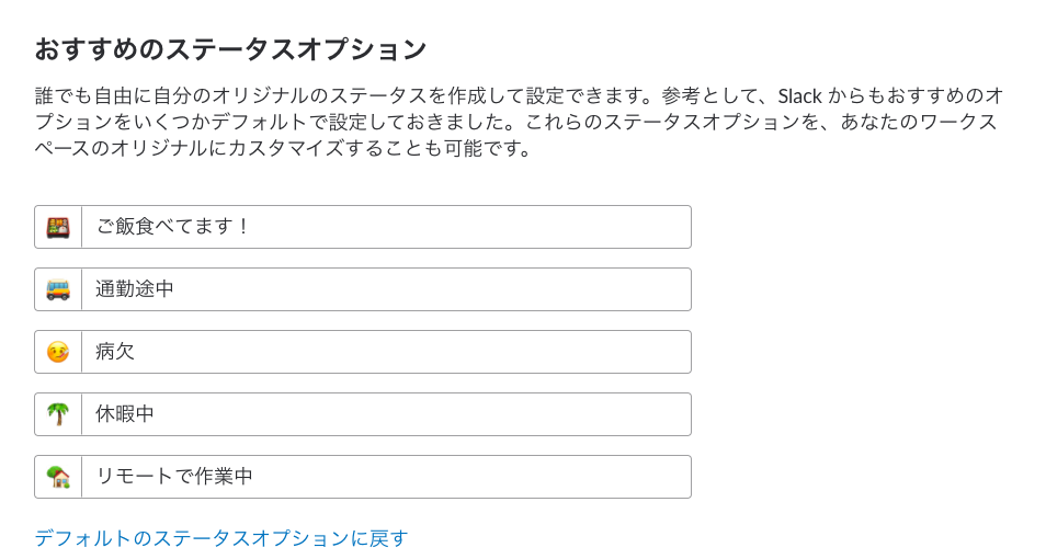 Slack管理者は、5種類のステータスを編集することができます。