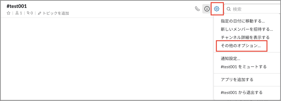①共有したいチャンネルの設定を開き、「その他のオプション」を選択