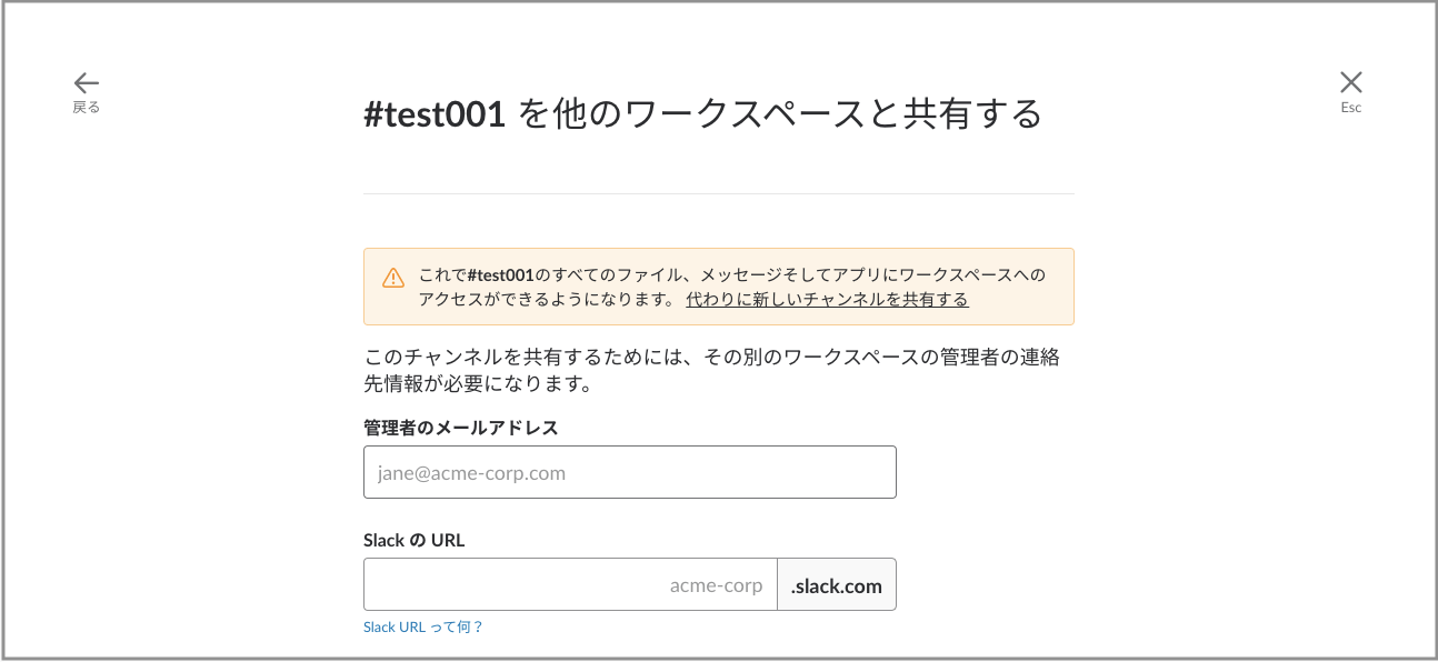 まずは、相手のSlackのURLと管理者かオーナーのメールアドレスを準備してください。