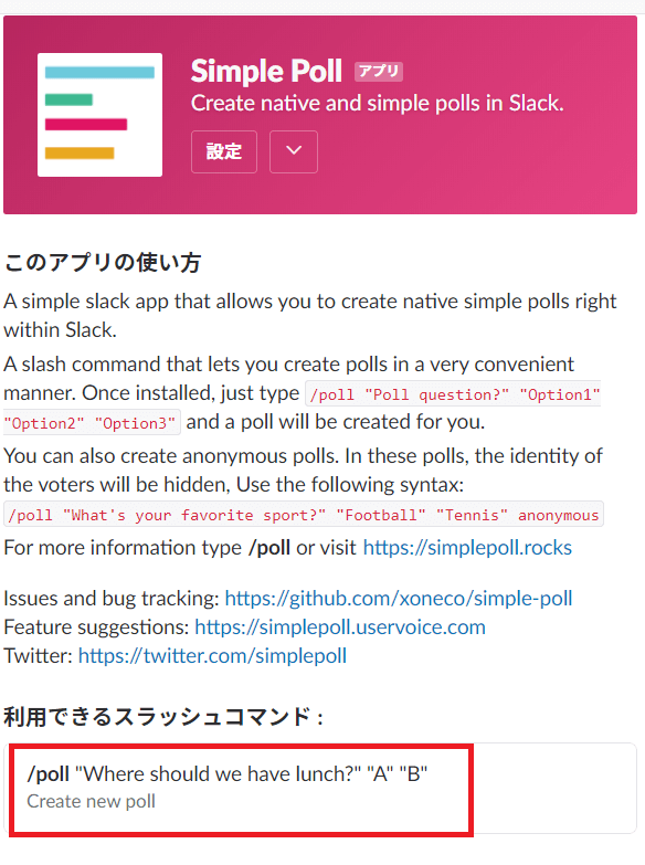 「Simple Poll」の基本的な使い方
